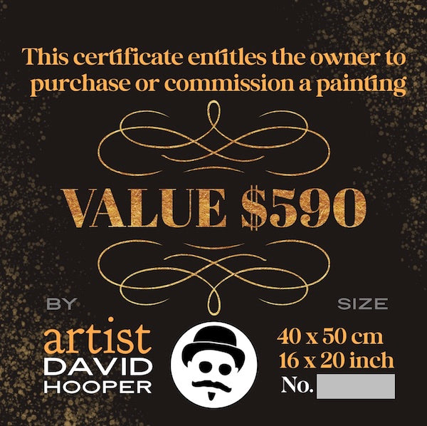 This certificate entitles the owner to purchase or commission a painting to the value of $590 AUD.