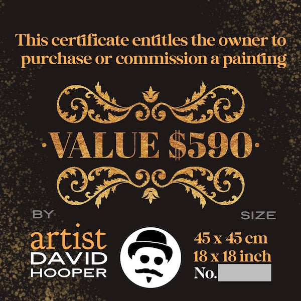 This certificate entitles the owner to purchase or commission a painting to the value of $590 AUD.