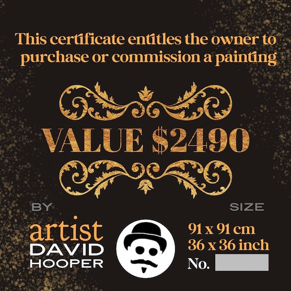 This certificate entitles the owner to purchase or commission a painting to the value of $2490 AUD.