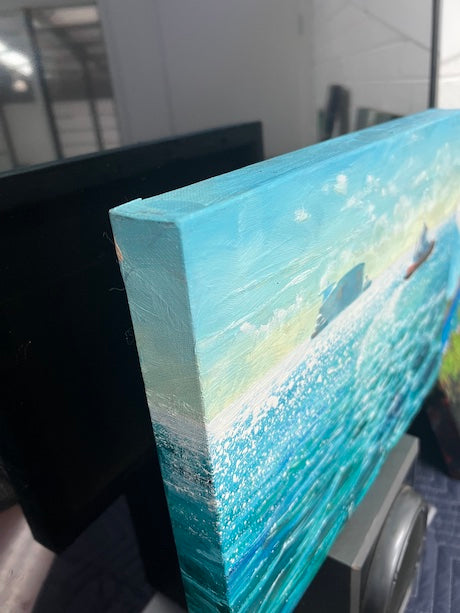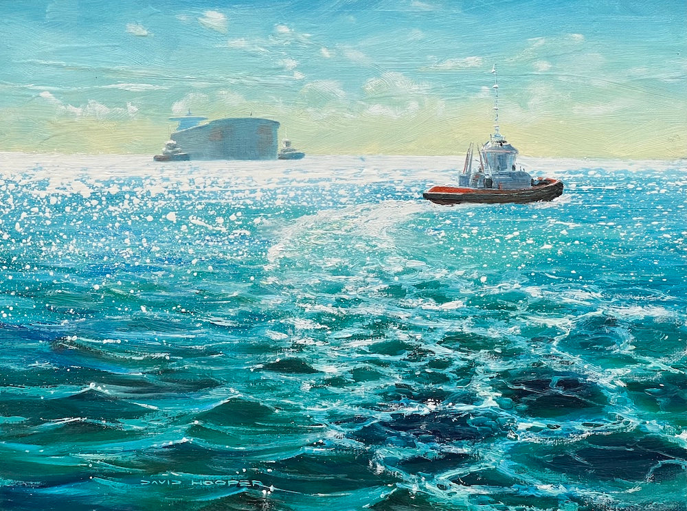 As a large cape class ship glides into the Port hedland harbour, a morning meeting includes many attendees. 30x40cm / 12x16" Oil on Canvas. Free global shipping.