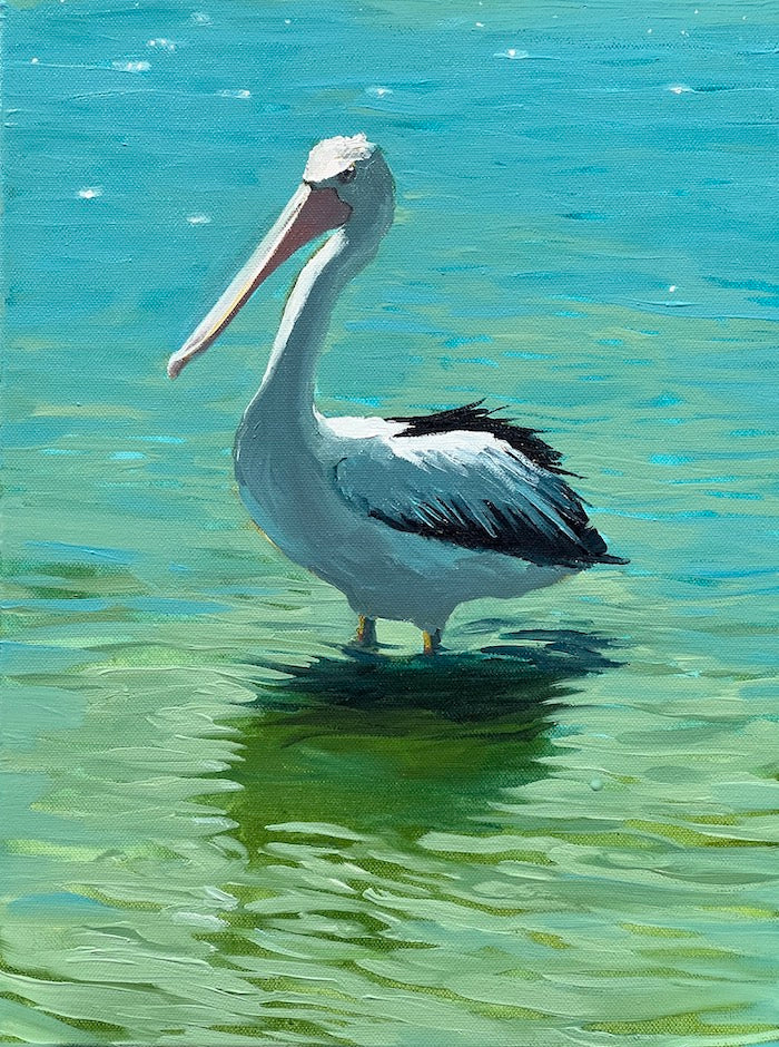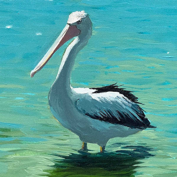 With it's big bill, the pelican is one of the first birds that children worldwide recognise. 30x40cm / 12x16" oil on canvas. free shipping.
