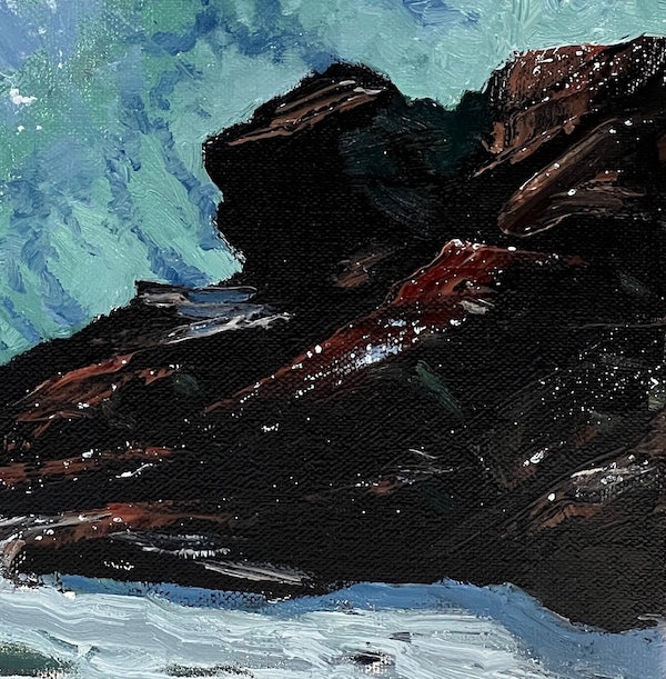 The day after the storm, I walked around the rocks at the south end of Diggers beach. 30x40cm Oil on Canvas. Free freight worldwide* (see freight page)